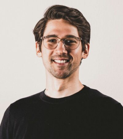 A hand holding a smartphone displaying a webpage titled 'Creating a Brand' with navigation options like Home, Discovery, Members, and Topics. The background is out of focus, providing a neutral setting.